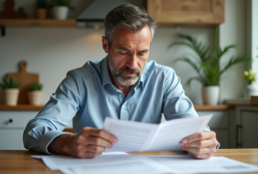 Homme d'âge moyen examinant des documents de prêt immobilier